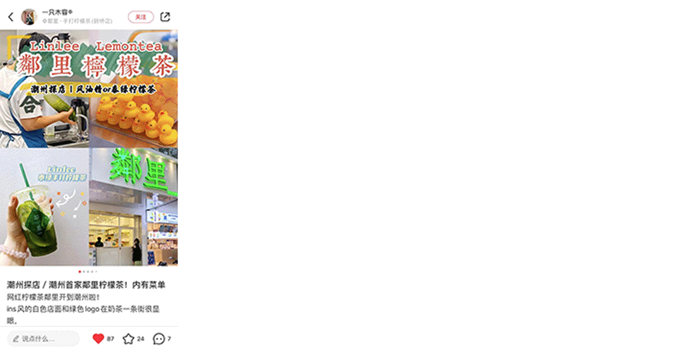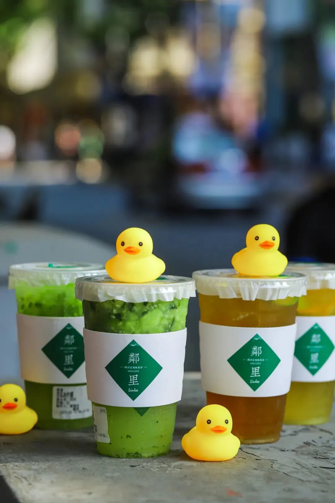 开哪火哪,名副其实的排队王 买他家柠檬茶还送一只小黄鸭 这也太可爱啦~ 香水柠檬是邻里的主角,无籽不苦 汁水香气浓郁在口感上 也堪称绝佳自带香水buff 每一杯柠檬茶都要经过“暴力”攻击 称好重的柠檬加入冰块,有了冰块的间隔, 柠檬出汁更均匀柠檬皮的涩味也不容易跑出来! 03. LINLI 「 苦瓜冰柠茶 」 万物皆可柠檬茶 容易上火的天气里 苦瓜柠檬茶也是个不错的选择! 本以为苦瓜柠檬茶是黑暗组合 喝前可搅拌一下 每口能吸到颗粒感 真的会越喝越上头! 「 青瓜冰柠茶 」 苦瓜柠檬茶听起来已经够黑暗了 紧跟其后的还有青瓜柠檬茶青瓜 比苦瓜味多了一丝丝清甜口感丰富,清爽不腻。 青瓜与柠檬的碰撞 让原有的清香味再升一个level 猛吸一口,能嚼到爽口的青瓜粒 一杯喝下去满满的维生素! 没有一点罪恶感! 「 鸭屎香柠檬茶 」 “鸭屎香” 其实是一种潮汕特色茗茶 因生长在用鸭屎灌溉的土里才得此名 和“猫屎咖啡”大同小异~ “鸭屎香” 属于凤凰单枞的名种四大乌龙品类中广东乌龙的扛把子 它有股独特的花果香 比其它品种的茶叶多了些甜味 回甘更绵延... 店里柠檬茶还有椰子、香橙… 还有超多口味等你亲自来体验~ 最后不要忘记带走一只小黄鸭哦!